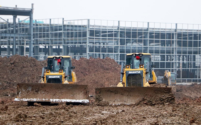 山推成套建筑设备在城市建设项目中推土作业